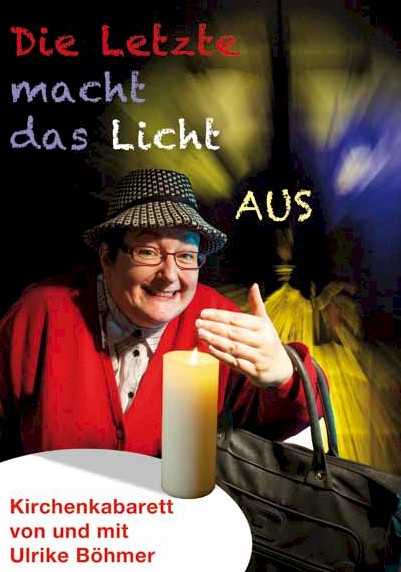 „Die Letzte macht das Licht AUS “ heißt das mittlerweile 5. Programm der Iserlohner Kirchenkabarettistin Ulrike Böhmer. Kritisch und humorvoll geht die Katholikin mit „Ihrer“ katholischen Kirche ins Gericht. In ihrer Paraderolle als Erna Schabiewsky aus Dortmund nimmt Sie kein Blatt vor den Mund, denn das große Motto in der Kirche lautet ja: DIALOG. Also wird unverblümt gesprochen – über Frühmessen-Aus, Zölibat, Verhütungsmittel, evangelische Pastorinnen, Beichte, Frauengemeinschaft, Bischöfe ….